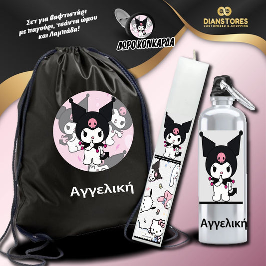 Σετ Δώρου με Λαμπάδα Kuromi με τσάντα & παγούρι