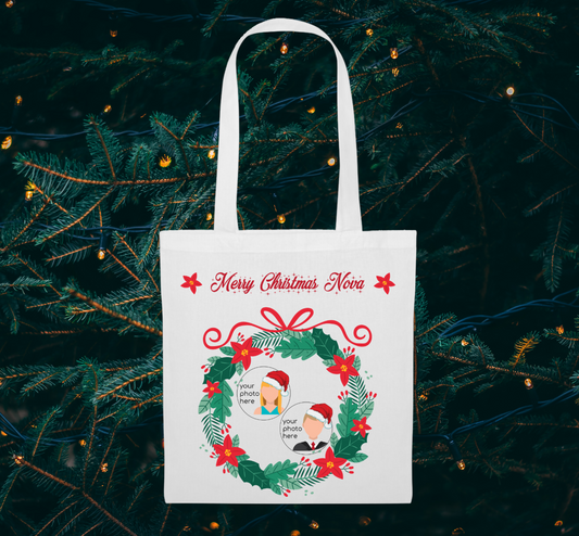 Totebag τσάντα Χριστουγεννιάτικη με φωτογραφίες οικογένειας