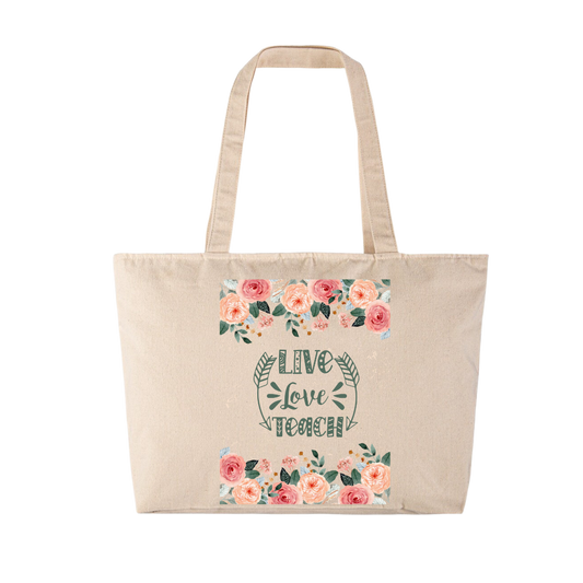 Tote bag τσάντα λευκή για δασκάλες "Teaching is a work of Heart Floral"