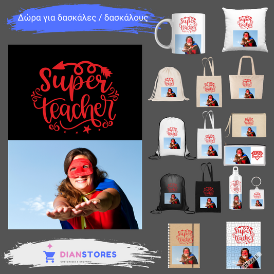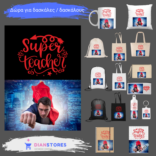 Στάμπα για δασκάλες "Superwoman TEacher" σε προϊον της επιλογής σας (505-20135)