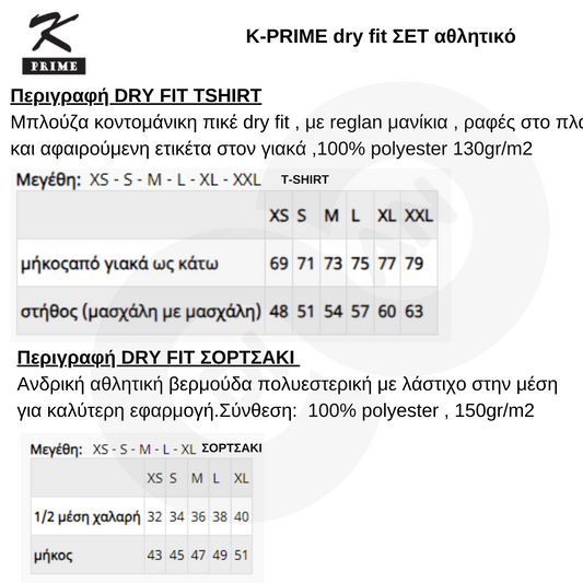 Dry Fit KPRIME Αθλητικό ΣΕΤ Προπόνησης / Εμφάνιση