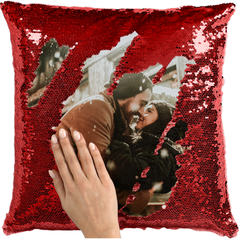 Μαξιλάρι με κόκκινες πούλιες με εκτύπωση στην λευκή πλευρά