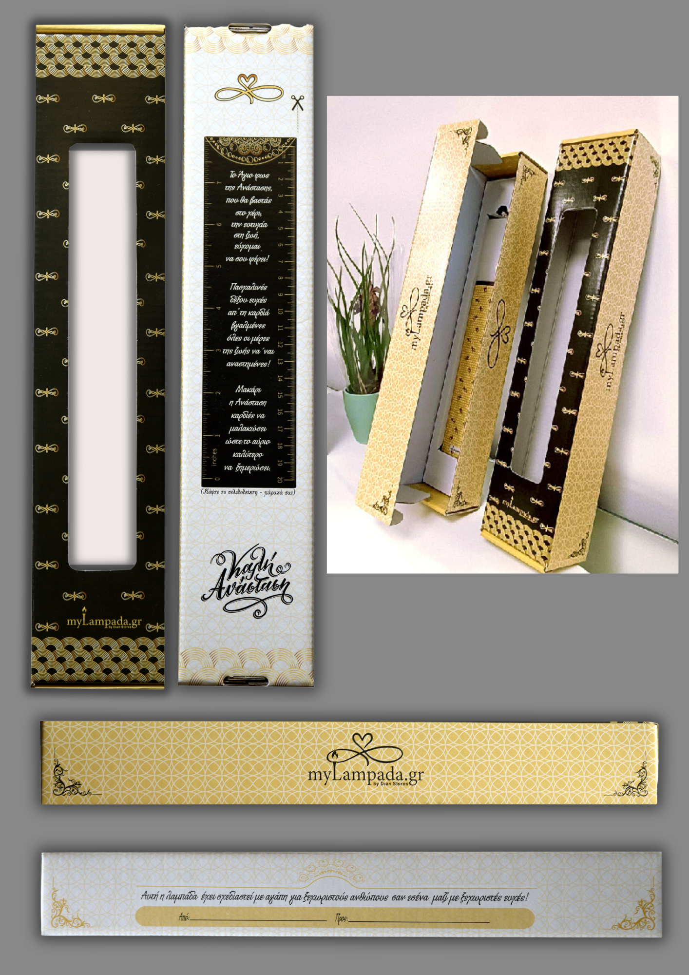 - Η λαμπάδα αποστέλνεται σε σκληρό κουτί Δώρου MyLampada.gr με πασχαλινές ευχές και κοπτικό χάρακα δώρο